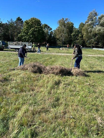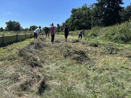 Ganz nebenbei fiel dabei auch Heu an: Es wurde erstmals auf den neuen Feldern geerntet unddas Schnittgut dient den Schafen im Winter als Futter – ein Schritt hin zu mehr Selbstversorgung. Die Schafe danken allen helfenden Händen, die in der warmen Junisonne mit angepackt haben.