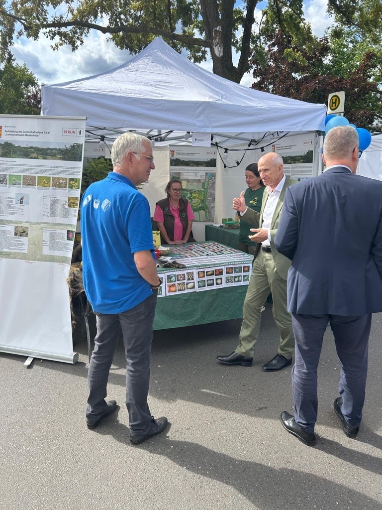 Die Natur- und Rangerstation war mit einem eigenen Stand auf dem Straßenfest zum 20-jährigen Jubiläum des UnternehmensNetzwerks Motzener Straße vertreten. Besucherinnen und Besucher konnten sich dort über die vielfältige Arbeit im Naturschutz und die Bildungsangebote auf der Station informieren. Zudem bot das Fest Gelegenheit zum Austausch mit Vertreterinnen und Vertretern aus Politik, Wirtschaft und Wissenschaft der Region. Ein gelungenes Beispiel für gelebte Vernetzung zwischen Natur, Wirtschaft und Gemeinschaft.