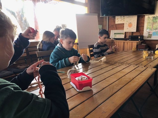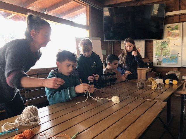 Am 22.3.25 konnten unsere Junior Ranger Einblick in die wundervolle Welt des Häkelns bekommen. Als Grundkurs lernten alle zuerst die Häkelschrift. Danach haben wir mittelgroße Häkelnadeln und einen Knäuel unserer selbstgemachten Wolle (die geschoren, gewaschen, gekämmt, gesponnen und gefärbt wurde) bekommen, um nun von Jana das Häkeln zu erlernen.