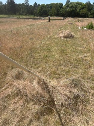 Ganz nebenbei fiel dabei auch Heu an: Es wurde erstmals auf den neuen Feldern geerntet unddas Schnittgut dient den Schafen im Winter als Futter – ein Schritt hin zu mehr Selbstversorgung. Die Schafe danken allen helfenden Händen, die in der warmen Junisonne mit angepackt haben.
