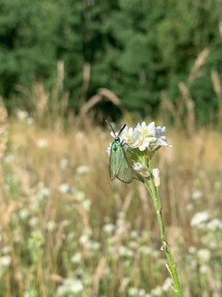 Auf den Wiesen des Landschaftsparks und der Feldmark Marienfelde lassen sich derzeit verschiedene Tagfalter und Widderchen beobachten, darunter der Schachbrettfalter, das Grüne und das Fünffleck-Widderchen sowie der Schwalbenschwanz. Ihr Vorkommen weist auf die ökologische Qualität dieser blütenreichen Flächen hin.
