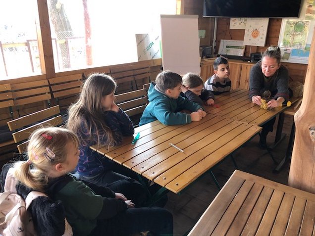 Mit den Zwiebelfröschen haben wir in der ersten Grünen Schule 2025 die Lebensweise von Wildbienen kennengelernt und erfahren, wie wichtig Artenvielfalt für ihre Ernährung und das Überleben einzelner Arten ist. Anschließend haben wir ein Insektenhotel mit verschiedenen Materialien bestückt, das nun trocknen muss, um fertiggestellt zu werden.